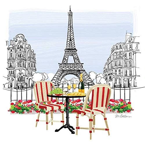This beverage size napkin will be perfect for your French themed event! The design is the artwork of Martha Collins and features the Eiffel Tower with a bistro style table and chairs. Package contains 20, 3-ply napkins, 5″ square folded. Design is on all panels. Naturally bleached without chlorine. (Disposable paper napkins)