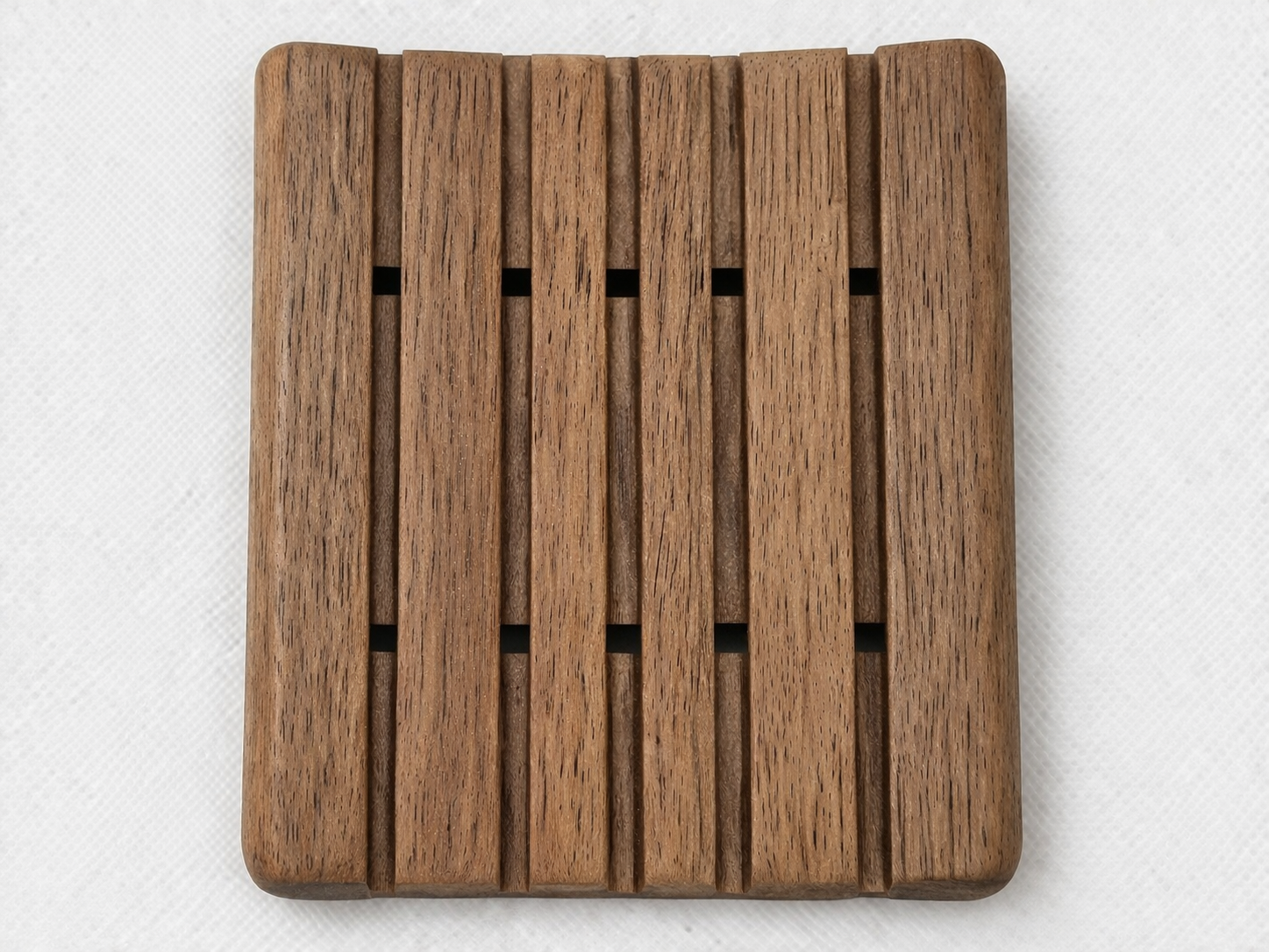 Handcrafted from rich mesquite wood finished with protective polyurethane, this compact soap dish brings natural warmth and function to your space. Measuring 3.75″ x 3″, its slatted design allows for proper drainage, helping extend the life of your soap while adding a refined, artisanal touch to your sink or shower.