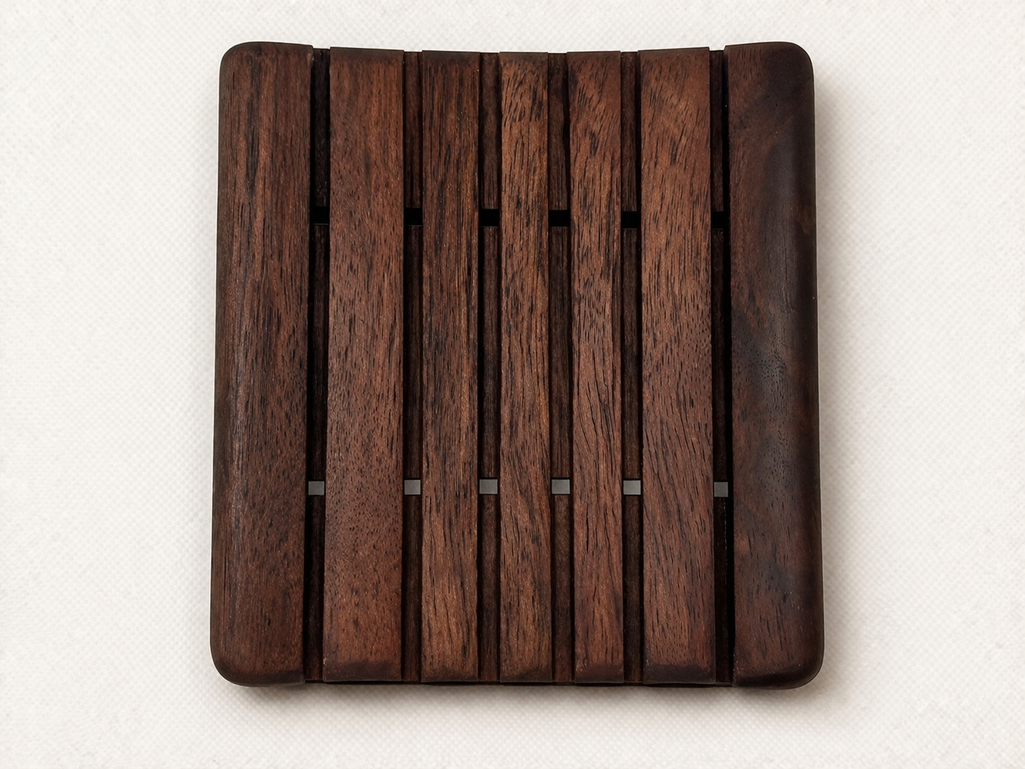 Handcrafted from rich mesquite wood finished with protective oil, this compact soap dish brings natural warmth and function to your space. Measuring 3.75″ x 3″, its slatted design allows for proper drainage, helping extend the life of your soap while adding a refined, artisanal touch to your sink or shower.